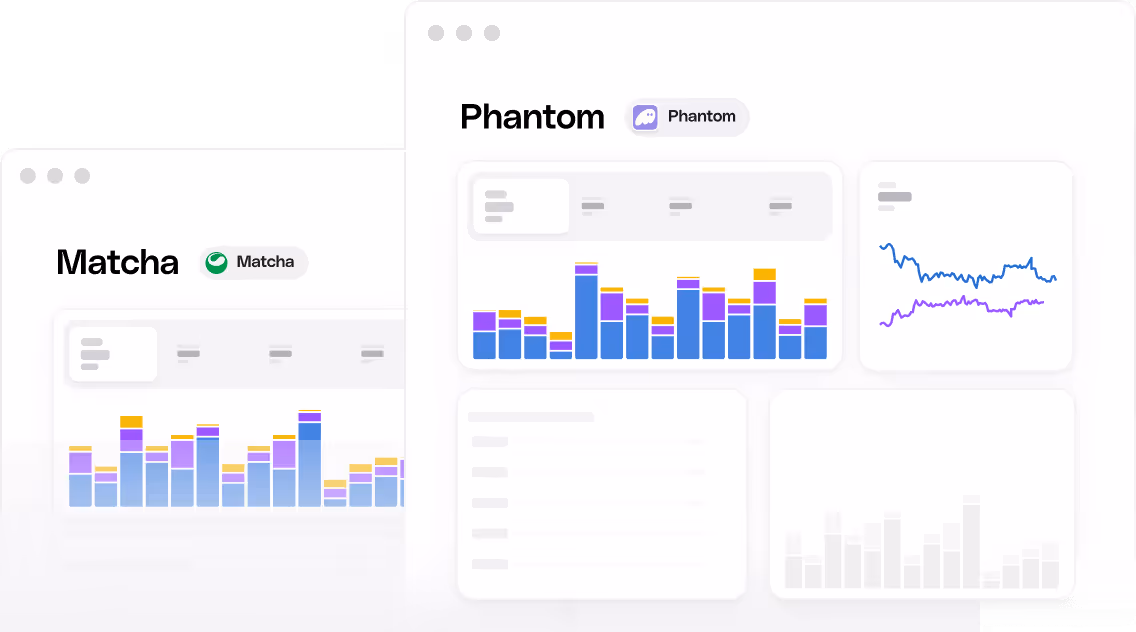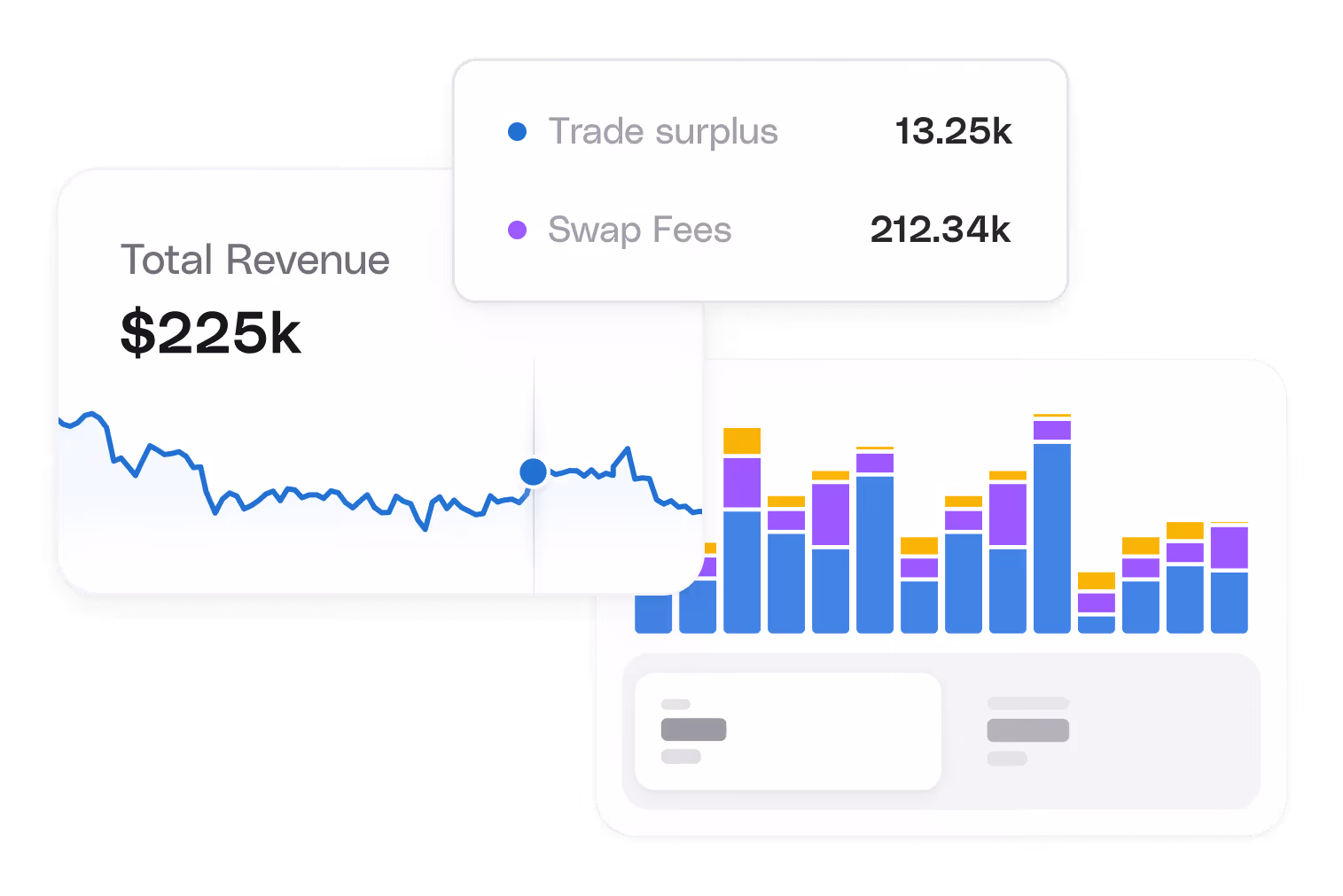 Track key trading and revenue metrics with in-depth charts and data from onchain trades.