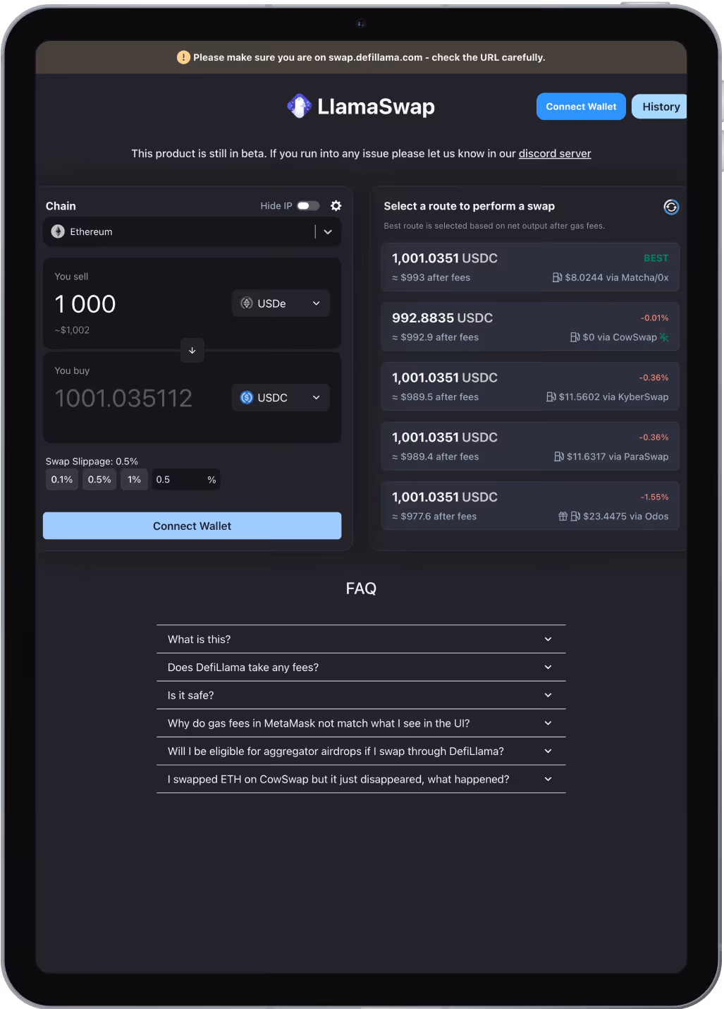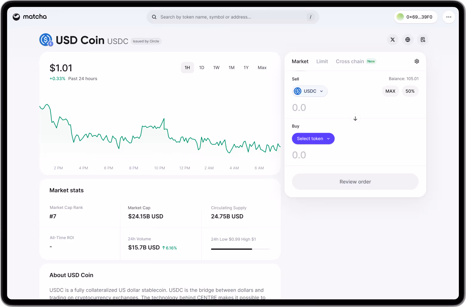 Best-in-class liquidity aggregation and smart order routing. Try it live on Matcha.