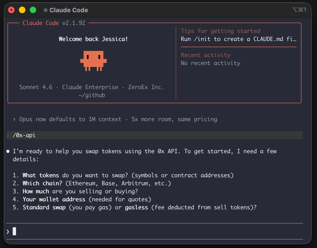 npx skills add 0xProject/0x-ai0x AI is compatible with 45+ leading AI coding agents, including Claude Code, Cursor, GitHub Copilot, Cline, Codex, Gemini CLI, and Warp. Once installed, invoke in any session with /0x-api.